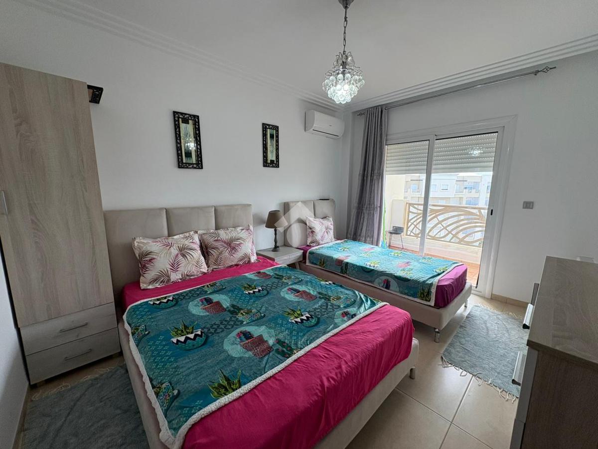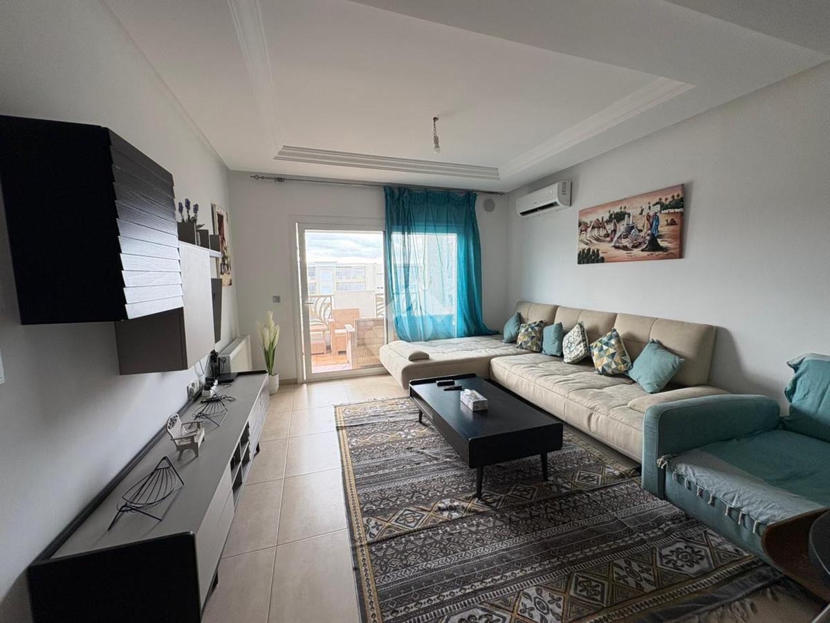 Cet appartement est situé au 4éme et ldernier étage d’une résidence dans la zone touristique de Monastir. Le salon est spacieux et lumineux grâce à sa baie vitrée qui donne accès à une terrasse offrant une magnifique vue sur les piscines de la résidence, où l’on peut profiter de la douceur du climat et des moments de détente en plein air.