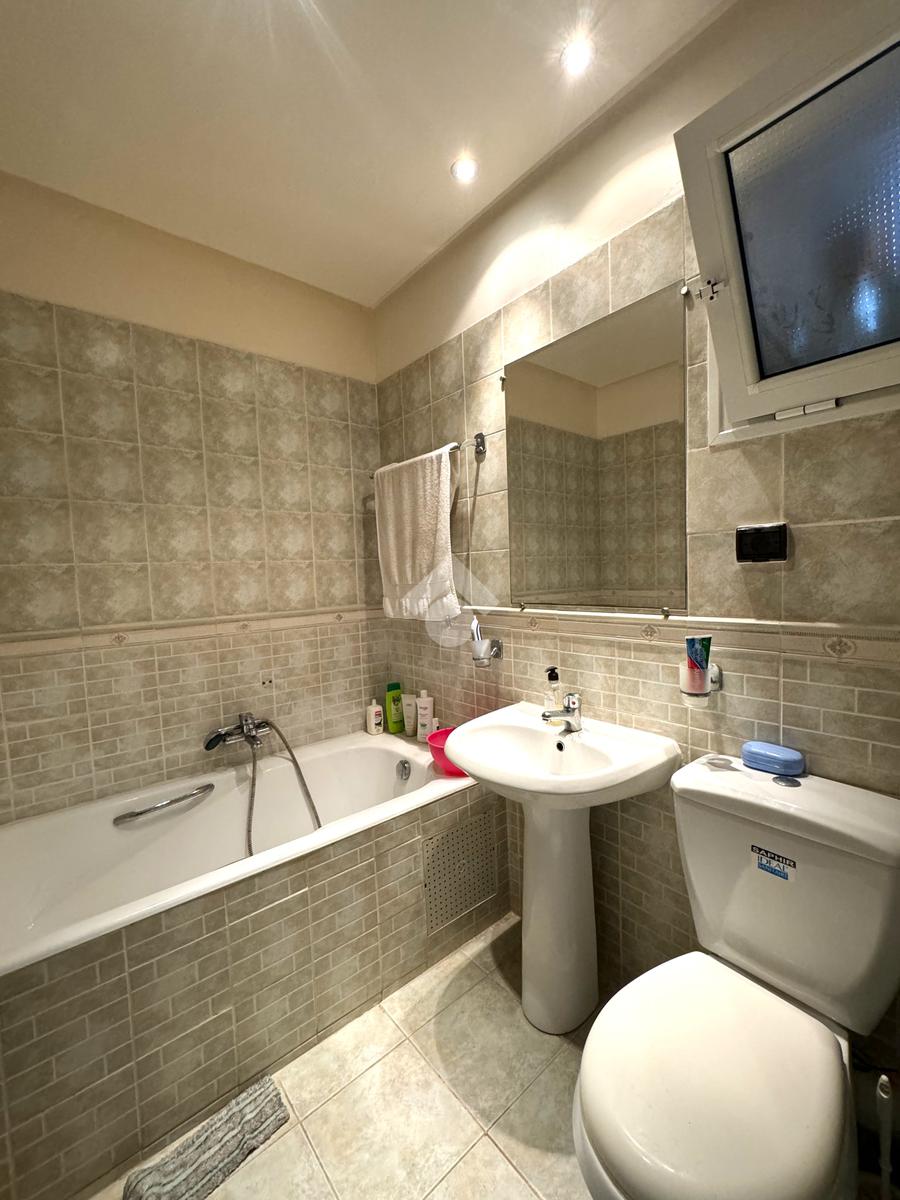 Une salle de bain complète, dotée d’une baignoire, vient compléter cet espace.