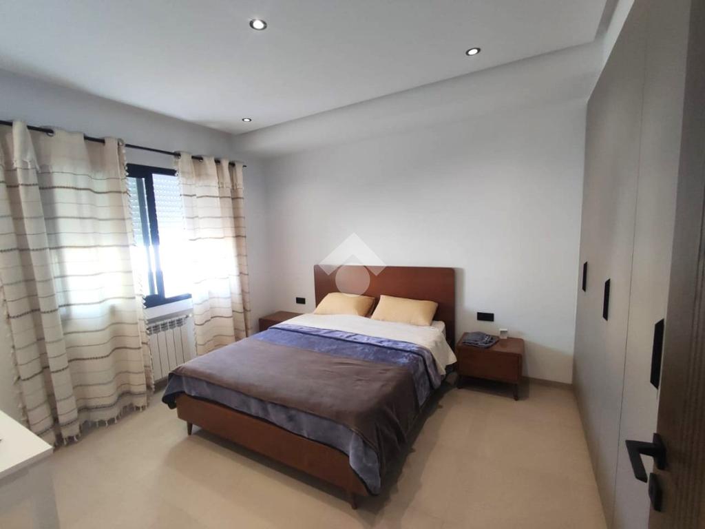 Cet appartement meublé est situé au deuxième et dernier étage d’une nouvelle résidence sécurisée et gardée, à quelques minutes à pied de la mer.